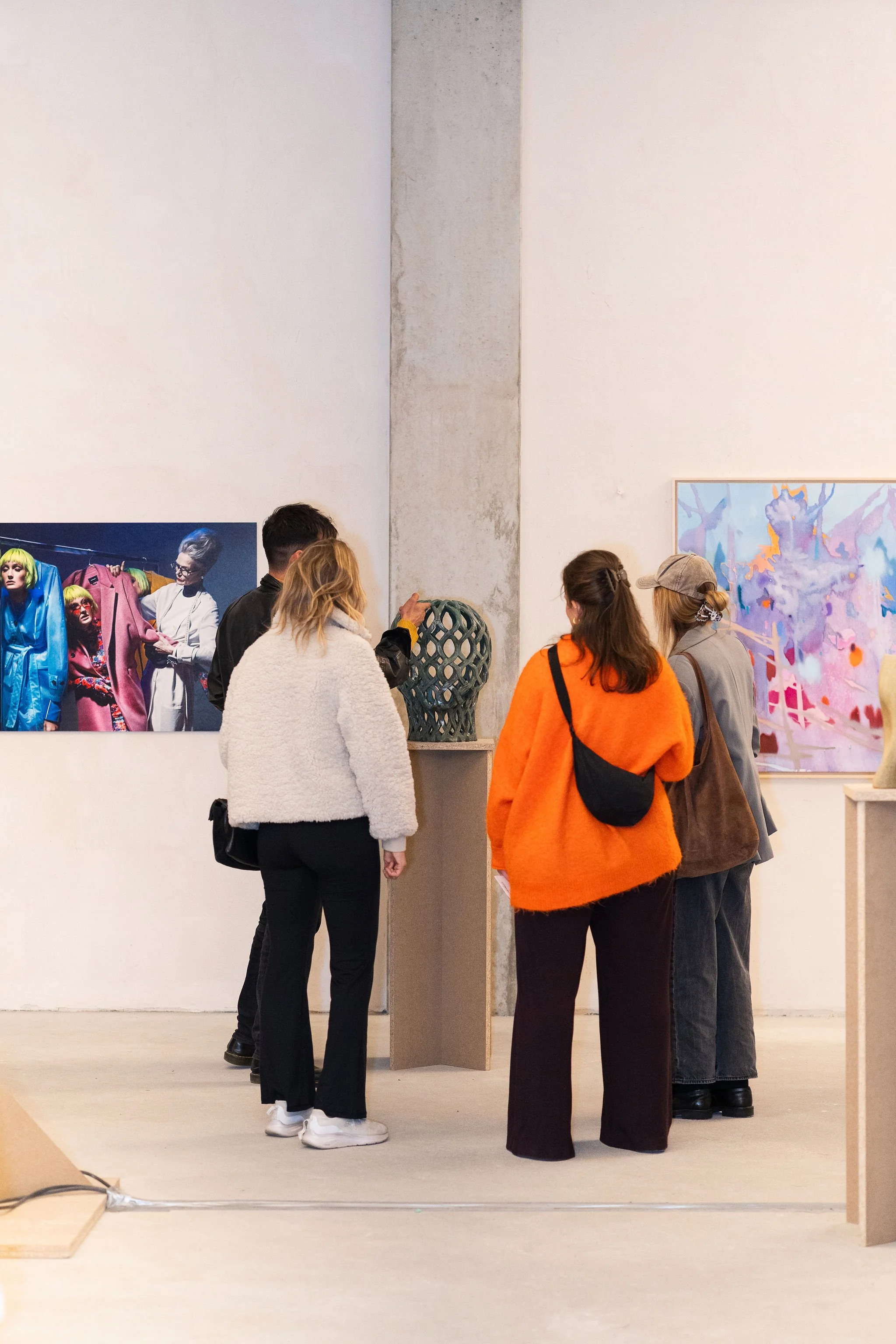 Oil paint is the main medium — chosen first for its resemblance to the fluidity of water-colour, but now cherished for its depth, its patience, its forgiving nature. It allows to erase, rebuild, and sculpt. She mix pigments gathered from the landscapes where she travels through, blending them with ink, acrylic spray paint, oil pastel. Sometimes you can find even embroidery and sequins in her works — to weave tactile layers, memory, and matter into one surface.